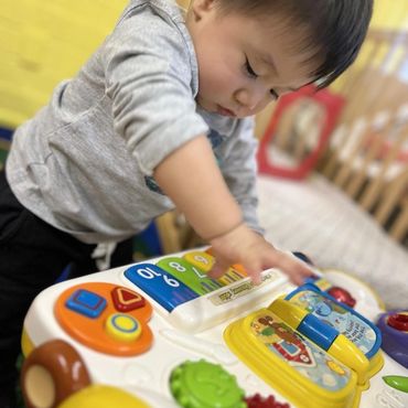 Our toddlers are offered a variety of opportunities to explore their world through play. Gross motor skills and social skills are developed through both structured and unstructured play. Their days are filled with music, art, dance, story time and more.